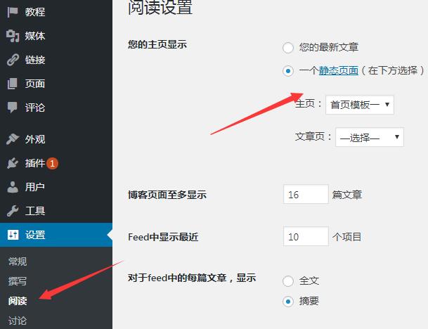 发布页面后,然后在后台的 设置 – 阅读 里将此页面设置为首页即可。